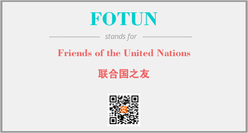 英文缩略词“FOTUN”经常作为“Friends of the United Nations”的英文缩写来使用,中文表示:“联合国之友”。本文将详细介绍英文缩写词FOTUN所代表英文单词,其对应的中文拼音、详细解释以及在英语中的流行度。此外,还有关于缩略词FOTUN的分类、应用领域及相关应用示例等。