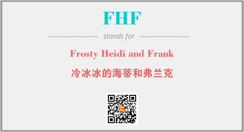 上述内容是“Frosty Heidi and Frank”作为“FHF”的缩写,解释为“冷冰冰的海蒂和弗兰克”时的信息,以及英文缩略词FHF所代表的英文单词,其对应的中文拼音、详细解释以及在英文中的流行度和相关分类、应用领域及应用示例等。