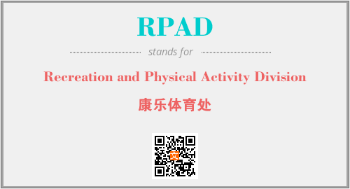 上述内容是“Recreation and Physical Activity Division”作为“RPAD”的缩写,解释为“康乐体育处”时的信息,以及英文缩略词RPAD所代表的英文单词,其对应的中文拼音、详细解释以及在英文中的流行度和相关分类、应用领域及应用示例等。