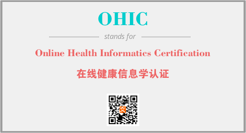 上述内容是“Online Health Informatics Certification”作为“OHIC”的缩写,解释为“在线健康信息学认证”时的信息,以及英文缩略词OHIC所代表的英文单词,其对应的中文拼音、详细解释以及在英文中的流行度和相关分类、应用领域及应用示例等。