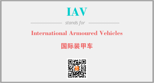上述内容是“International Armoured Vehicles”作为“IAV”的缩写,解释为“国际装甲车”时的信息,以及英文缩略词IAV所代表的英文单词,其对应的中文拼音、详细解释以及在英文中的流行度和相关分类、应用领域及应用示例等。