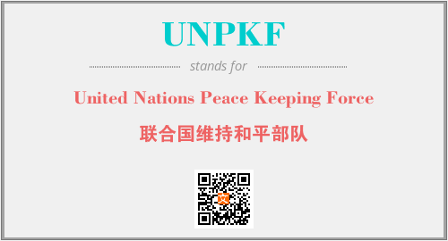 上述内容是“United Nations Peace Keeping Force”作为“UNPKF”的缩写,解释为“联合国维持和平部队”时的信息,以及英文缩略词UNPKF所代表的英文单词,其对应的中文拼音、详细解释以及在英文中的流行度和相关分类、应用领域及应用示例等。