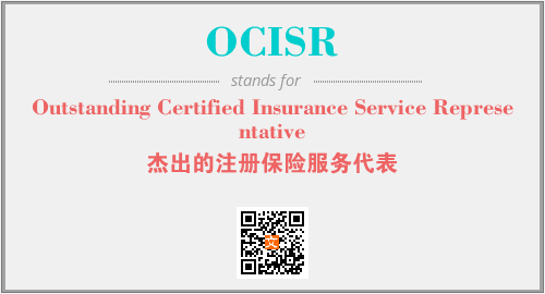 上述内容是“Outstanding Certified Insurance Service Representative”作为“OCISR”的缩写,解释为“杰出的注册保险服务代表”时的信息,以及英文缩略词OCISR所代表的英文单词,其对应的中文拼音、详细解释以及在英文中的流行度和相关分类、应用领域及应用示例等。