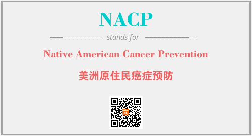 上述内容是“Native American Cancer Prevention”作为“NACP”的缩写,解释为“美洲原住民癌症预防”时的信息,以及英文缩略词NACP所代表的英文单词,其对应的中文拼音、详细解释以及在英文中的流行度和相关分类、应用领域及应用示例等。
