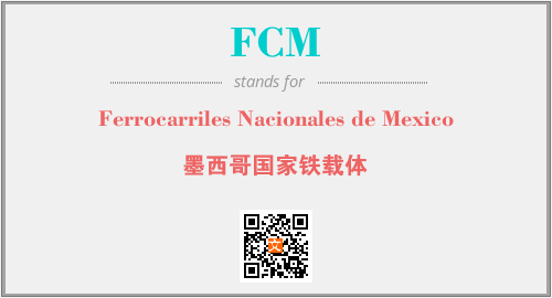 上述内容是“Ferrocarriles Nacionales de Mexico”作为“FCM”的缩写,解释为“墨西哥国家铁载体”时的信息,以及英文缩略词FCM所代表的英文单词,其对应的中文拼音、详细解释以及在英文中的流行度和相关分类、应用领域及应用示例等。