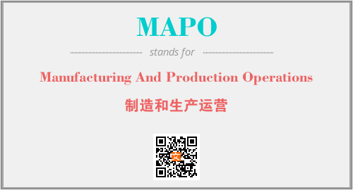 英文缩略词“MAPO”经常作为“Manufacturing And Production Operations”的英文缩写来使用,中文表示:“制造和生产运营”。本文将详细介绍英文缩写词MAPO所代表英文单词,其对应的中文拼音、详细解释以及在英语中的流行度。此外,还有关于缩略词MAPO的分类、应用领域及相关应用示例等。