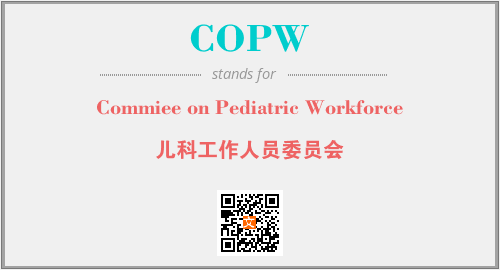 上述内容是“Commiee on Pediatric Workforce”作为“COPW”的缩写,解释为“儿科工作人员委员会”时的信息,以及英文缩略词COPW所代表的英文单词,其对应的中文拼音、详细解释以及在英文中的流行度和相关分类、应用领域及应用示例等。