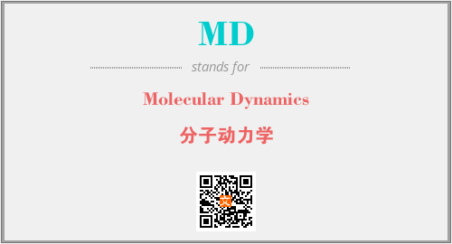 英文缩略词“MD”经常作为“Molecular Dynamics”的英文缩写来使用,中文表示:“分子动力学”。本文将详细介绍英文缩写词MD所代表英文单词,其对应的中文拼音、详细解释以及在英语中的流行度。此外,还有关于缩略词MD的分类、应用领域及相关应用示例等。