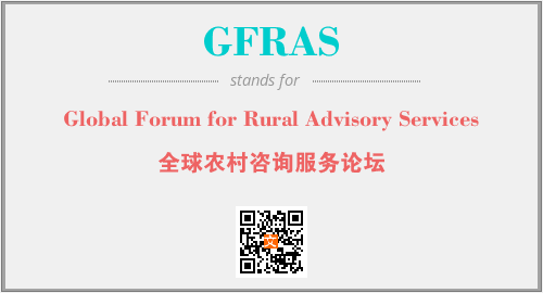 上述内容是“Global Forum for Rural Advisory Services”作为“GFRAS”的缩写,解释为“全球农村咨询服务论坛”时的信息,以及英文缩略词GFRAS所代表的英文单词,其对应的中文拼音、详细解释以及在英文中的流行度和相关分类、应用领域及应用示例等。