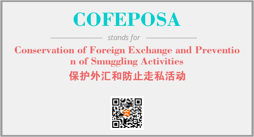 英文缩略词“COFEPOSA”经常作为“Conservation of Foreign Exchange and Prevention of Smuggling Activities”的英文缩写来使用,中文表示:“保护外汇和防止走私活动”。本文将详细介绍英文缩写词COFEPOSA所代表英文单词,其对应的中文拼音、详细解释以及在英语中的流行度。此外,还有关于缩略词COFEPOSA的分类、应用领域及相关应用示例等。