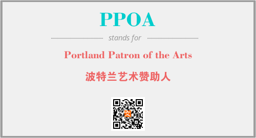 上述内容是“Portland Patron of the Arts”作为“PPOA”的缩写,解释为“波特兰艺术赞助人”时的信息,以及英文缩略词PPOA所代表的英文单词,其对应的中文拼音、详细解释以及在英文中的流行度和相关分类、应用领域及应用示例等。