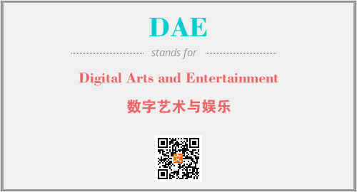 上述内容是“Digital Arts and Entertainment”作为“DAE”的缩写,解释为“数字艺术与娱乐”时的信息,以及英文缩略词DAE所代表的英文单词,其对应的中文拼音、详细解释以及在英文中的流行度和相关分类、应用领域及应用示例等。