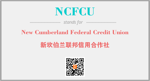 上述内容是“New Cumberland Federal Credit Union”作为“NCFCU”的缩写,解释为“新坎伯兰联邦信用合作社”时的信息,以及英文缩略词NCFCU所代表的英文单词,其对应的中文拼音、详细解释以及在英文中的流行度和相关分类、应用领域及应用示例等。