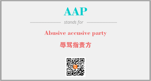 英文缩略词“AAP”经常作为“Abusive accusive party”的英文缩写来使用,中文表示:“辱骂指责方”。本文将详细介绍英文缩写词AAP所代表英文单词,其对应的中文拼音、详细解释以及在英语中的流行度。此外,还有关于缩略词AAP的分类、应用领域及相关应用示例等。