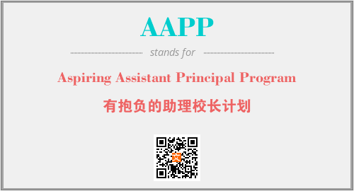 上述内容是“Aspiring Assistant Principal Program”作为“AAPP”的缩写,解释为“有抱负的助理校长计划”时的信息,以及英文缩略词AAPP所代表的英文单词,其对应的中文拼音、详细解释以及在英文中的流行度和相关分类、应用领域及应用示例等。