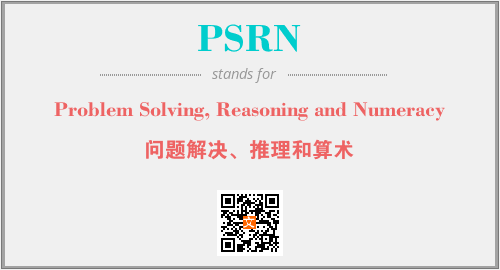 上述内容是“Problem Solving, Reasoning and Numeracy”作为“PSRN”的缩写,解释为“问题解决、推理和算术”时的信息,以及英文缩略词PSRN所代表的英文单词,其对应的中文拼音、详细解释以及在英文中的流行度和相关分类、应用领域及应用示例等。