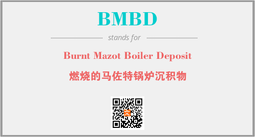 上述内容是“Burnt Mazot Boiler Deposit”作为“BMBD”的缩写,解释为“燃烧的马佐特锅炉沉积物”时的信息,以及英文缩略词BMBD所代表的英文单词,其对应的中文拼音、详细解释以及在英文中的流行度和相关分类、应用领域及应用示例等。