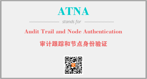 英文缩略词“ATNA”经常作为“Audit Trail and Node Authentication”的英文缩写来使用,中文表示:“审计跟踪和节点身份验证”。本文将详细介绍英文缩写词ATNA所代表英文单词,其对应的中文拼音、详细解释以及在英语中的流行度。此外,还有关于缩略词ATNA的分类、应用领域及相关应用示例等。