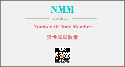 英文缩略词“NMM”经常作为“Number Of Male Member”的英文缩写来使用,中文表示:“男性成员数量”。本文将详细介绍英文缩写词NMM所代表英文单词,其对应的中文拼音、详细解释以及在英语中的流行度。此外,还有关于缩略词NMM的分类、应用领域及相关应用示例等。