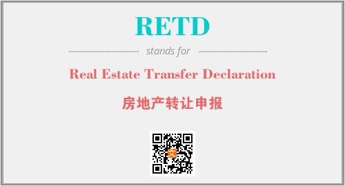 英文缩略词“RETD”经常作为“Real Estate Transfer Declaration”的英文缩写来使用,中文表示:“房地产转让申报”。本文将详细介绍英文缩写词RETD所代表英文单词,其对应的中文拼音、详细解释以及在英语中的流行度。此外,还有关于缩略词RETD的分类、应用领域及相关应用示例等。