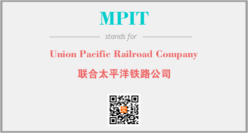 上述内容是“Union Pacific Railroad Company”作为“MPIT”的缩写,解释为“联合太平洋铁路公司”时的信息,以及英文缩略词MPIT所代表的英文单词,其对应的中文拼音、详细解释以及在英文中的流行度和相关分类、应用领域及应用示例等。