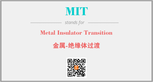 上述内容是“Metal Insulator Transition”作为“MIT”的缩写,解释为“金属-绝缘体过渡”时的信息,以及英文缩略词MIT所代表的英文单词,其对应的中文拼音、详细解释以及在英文中的流行度和相关分类、应用领域及应用示例等。