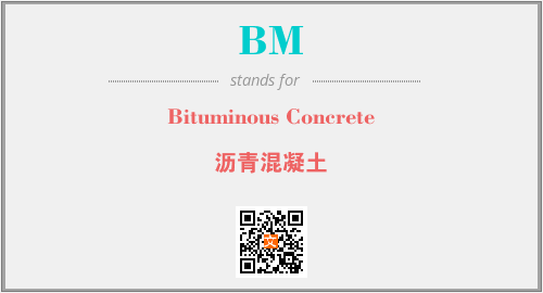 上述内容是“Bituminous Concrete”作为“BM”的缩写,解释为“沥青混凝土”时的信息,以及英文缩略词BM所代表的英文单词,其对应的中文拼音、详细解释以及在英文中的流行度和相关分类、应用领域及应用示例等。