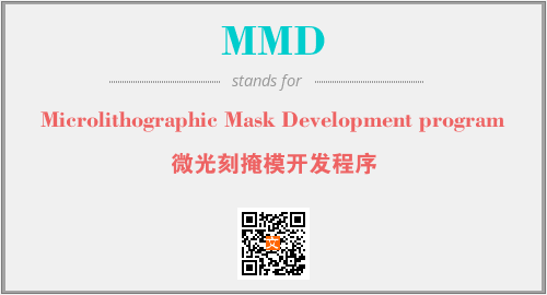 上述内容是“Microlithographic Mask Development program”作为“MMD”的缩写,解释为“微光刻掩模开发程序”时的信息,以及英文缩略词MMD所代表的英文单词,其对应的中文拼音、详细解释以及在英文中的流行度和相关分类、应用领域及应用示例等。