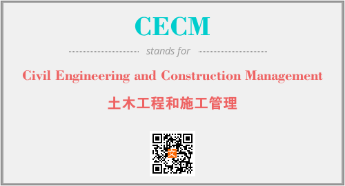 英文缩略词“CECM”经常作为“Civil Engineering and Construction Management”的英文缩写来使用,中文表示:“土木工程和施工管理”。本文将详细介绍英文缩写词CECM所代表英文单词,其对应的中文拼音、详细解释以及在英语中的流行度。此外,还有关于缩略词CECM的分类、应用领域及相关应用示例等。