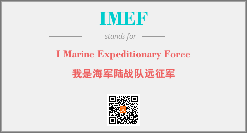 英文缩略词“IMEF”经常作为“I Marine Expeditionary Force”的英文缩写来使用,中文表示:“我是海军陆战队远征军”。本文将详细介绍英文缩写词IMEF所代表英文单词,其对应的中文拼音、详细解释以及在英语中的流行度。此外,还有关于缩略词IMEF的分类、应用领域及相关应用示例等。