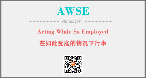 英文缩略词“AWSE”经常作为“Acting While So Employed”的英文缩写来使用,中文表示:“在如此受雇的情况下行事”。本文将详细介绍英文缩写词AWSE所代表英文单词,其对应的中文拼音、详细解释以及在英语中的流行度。此外,还有关于缩略词AWSE的分类、应用领域及相关应用示例等。