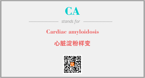 上述内容是“Cardiac amyloidosis”作为“CA”的缩写,解释为“心脏淀粉样变”时的信息,以及英文缩略词CA所代表的英文单词,其对应的中文拼音、详细解释以及在英文中的流行度和相关分类、应用领域及应用示例等。
