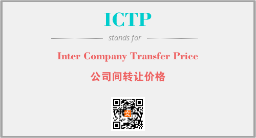 英文缩略词“ICTP”经常作为“Inter Company Transfer Price”的英文缩写来使用,中文表示:“公司间转让价格”。本文将详细介绍英文缩写词ICTP所代表英文单词,其对应的中文拼音、详细解释以及在英语中的流行度。此外,还有关于缩略词ICTP的分类、应用领域及相关应用示例等。