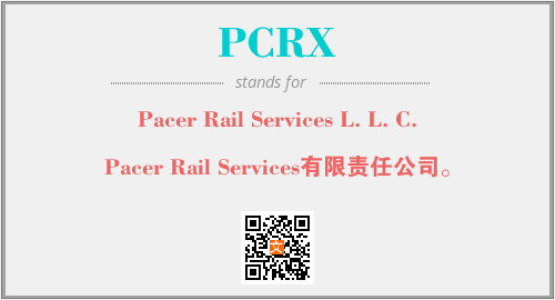 上述内容是“Pacer Rail Services L. L. C.”作为“PCRX”的缩写,解释为“Pacer Rail Services有限责任公司。”时的信息,以及英文缩略词PCRX所代表的英文单词,其对应的中文拼音、详细解释以及在英文中的流行度和相关分类、应用领域及应用示例等。