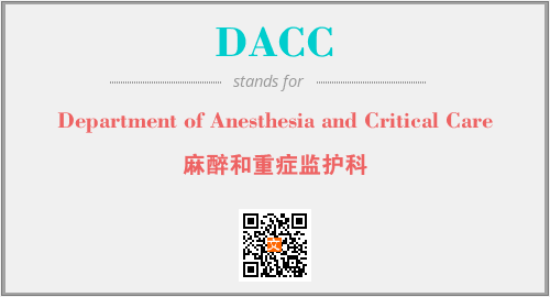 上述内容是“Department of Anesthesia and Critical Care”作为“DACC”的缩写,解释为“麻醉和重症监护科”时的信息,以及英文缩略词DACC所代表的英文单词,其对应的中文拼音、详细解释以及在英文中的流行度和相关分类、应用领域及应用示例等。