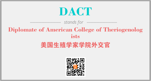 英文缩略词“DACT”经常作为“Diplomate of American College of Theriogenologists”的英文缩写来使用,中文表示:“美国生殖学家学院外交官”。本文将详细介绍英文缩写词DACT所代表英文单词,其对应的中文拼音、详细解释以及在英语中的流行度。此外,还有关于缩略词DACT的分类、应用领域及相关应用示例等。