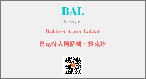 以上为Bakteri Asam Laktat英文缩略词BAL的中文解释,以及该英文缩写在英语的流行度、分类和应用领域方面的信息。