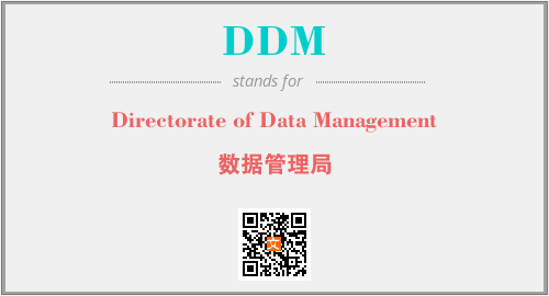 英文缩略词“DDM”经常作为“Directorate of Data Management”的英文缩写来使用,中文表示:“数据管理局”。本文将详细介绍英文缩写词DDM所代表英文单词,其对应的中文拼音、详细解释以及在英语中的流行度。此外,还有关于缩略词DDM的分类、应用领域及相关应用示例等。