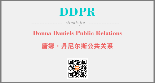 以上为Donna Daniels Public Relations英文缩略词DDPR的中文解释,以及该英文缩写在英语的流行度、分类和应用领域方面的信息。
