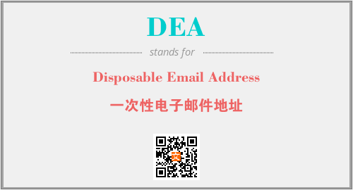 英文缩略词“DEA”经常作为“Disposable Email Address”的英文缩写来使用,中文表示:“一次性电子邮件地址”。本文将详细介绍英文缩写词DEA所代表英文单词,其对应的中文拼音、详细解释以及在英语中的流行度。此外,还有关于缩略词DEA的分类、应用领域及相关应用示例等。