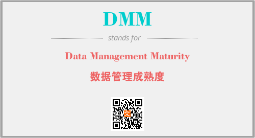 英文缩略词“DMM”经常作为“Data Management Maturity”的英文缩写来使用,中文表示:“数据管理成熟度”。本文将详细介绍英文缩写词DMM所代表英文单词,其对应的中文拼音、详细解释以及在英语中的流行度。此外,还有关于缩略词DMM的分类、应用领域及相关应用示例等。