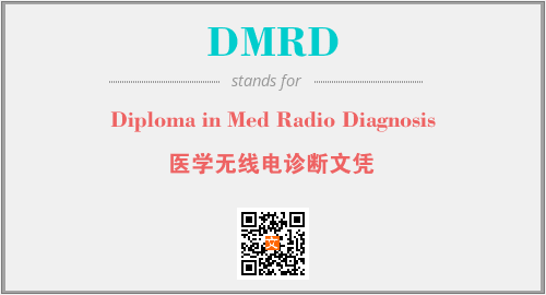 英文缩略词“DMRD”经常作为“Diploma in Med Radio Diagnosis”的英文缩写来使用,中文表示:“医学无线电诊断文凭”。本文将详细介绍英文缩写词DMRD所代表英文单词,其对应的中文拼音、详细解释以及在英语中的流行度。此外,还有关于缩略词DMRD的分类、应用领域及相关应用示例等。