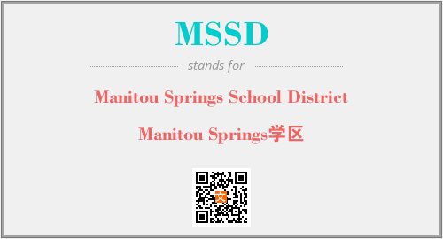 上述内容是“Manitou Springs School District”作为“MSSD”的缩写,解释为“Manitou Springs学区”时的信息,以及英文缩略词MSSD所代表的英文单词,其对应的中文拼音、详细解释以及在英文中的流行度和相关分类、应用领域及应用示例等。
