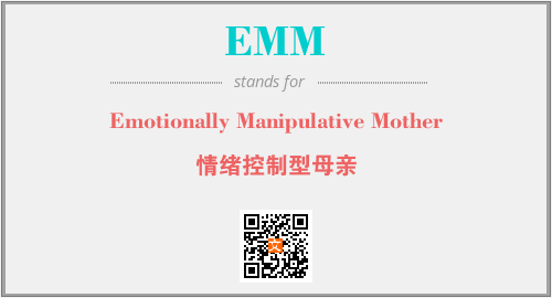 上述内容是“Emotionally Manipulative Mother”作为“EMM”的缩写,解释为“情绪控制型母亲”时的信息,以及英文缩略词EMM所代表的英文单词,其对应的中文拼音、详细解释以及在英文中的流行度和相关分类、应用领域及应用示例等。