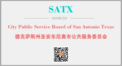 以上为City Public Service Board of San Antonio Texas英文缩略词SATX的中文解释,以及该英文缩写在英语的流行度、分类和应用领域方面的信息。