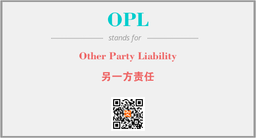 上述内容是“Other Party Liability”作为“OPL”的缩写,解释为“另一方责任”时的信息,以及英文缩略词OPL所代表的英文单词,其对应的中文拼音、详细解释以及在英文中的流行度和相关分类、应用领域及应用示例等。