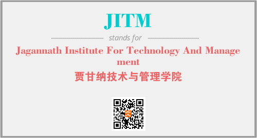 英文缩略词“JITM”经常作为“Jagannath Institute For Technology And Management”的英文缩写来使用,中文表示:“贾甘纳技术与管理学院”。本文将详细介绍英文缩写词JITM所代表英文单词,其对应的中文拼音、详细解释以及在英语中的流行度。此外,还有关于缩略词JITM的分类、应用领域及相关应用示例等。