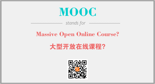 英文缩略词“MOOC”经常作为“Massive Open Online Course?”的英文缩写来使用,中文表示:“大型开放在线课程?”。本文将详细介绍英文缩写词MOOC所代表英文单词,其对应的中文拼音、详细解释以及在英语中的流行度。此外,还有关于缩略词MOOC的分类、应用领域及相关应用示例等。