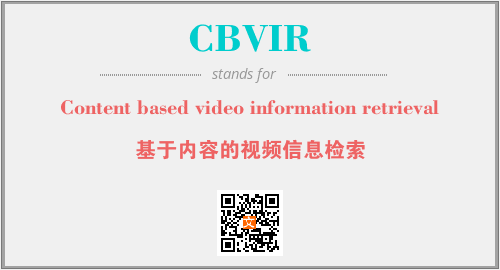 上述内容是“Content based video information retrieval”作为“CBVIR”的缩写,解释为“基于内容的视频信息检索”时的信息,以及英文缩略词CBVIR所代表的英文单词,其对应的中文拼音、详细解释以及在英文中的流行度和相关分类、应用领域及应用示例等。