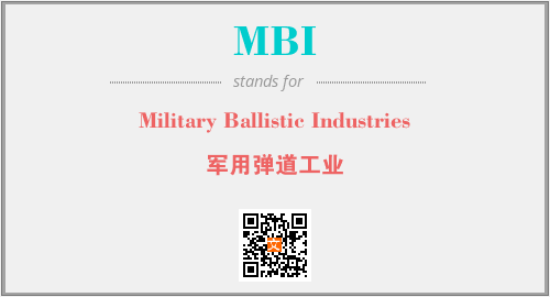 上述内容是“Military Ballistic Industries”作为“MBI”的缩写,解释为“军用弹道工业”时的信息,以及英文缩略词MBI所代表的英文单词,其对应的中文拼音、详细解释以及在英文中的流行度和相关分类、应用领域及应用示例等。